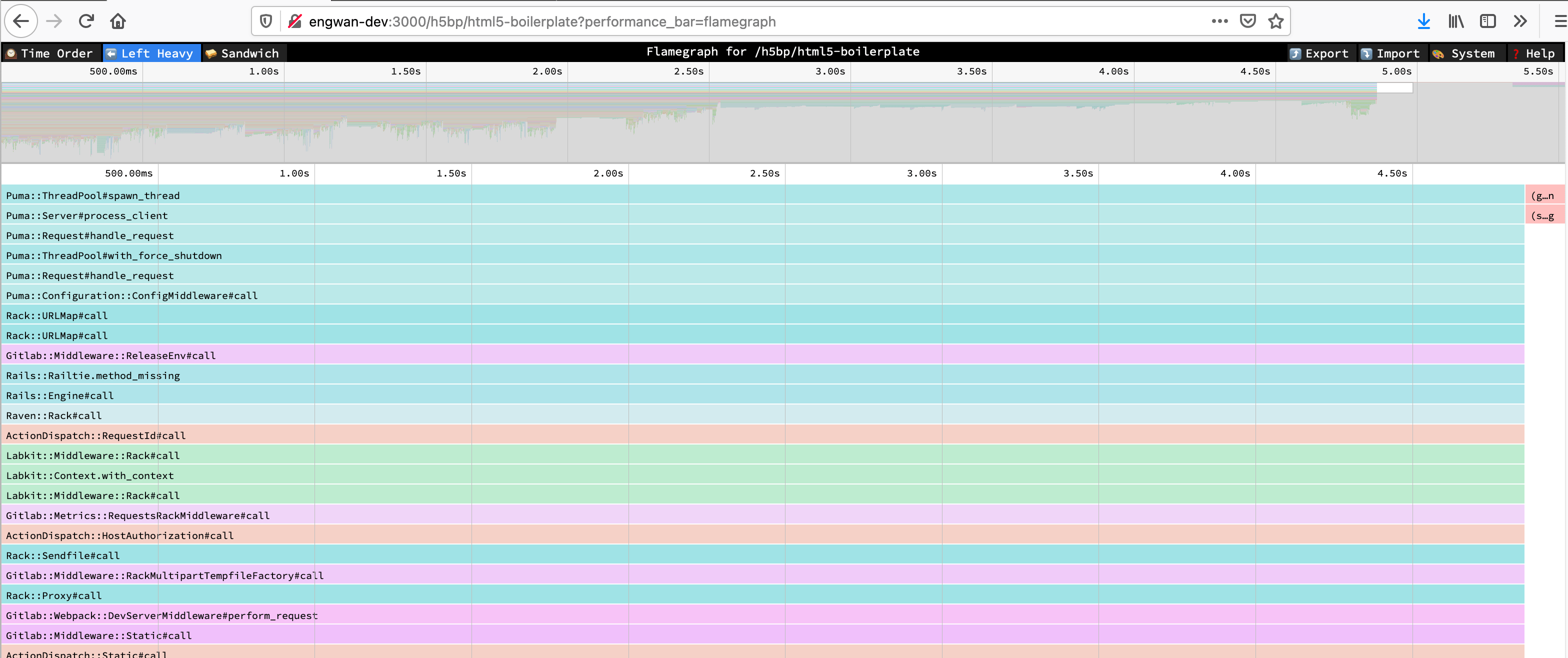 As we did with `stackprof`, we could also use `curl` with the `performance_bar` parameter.